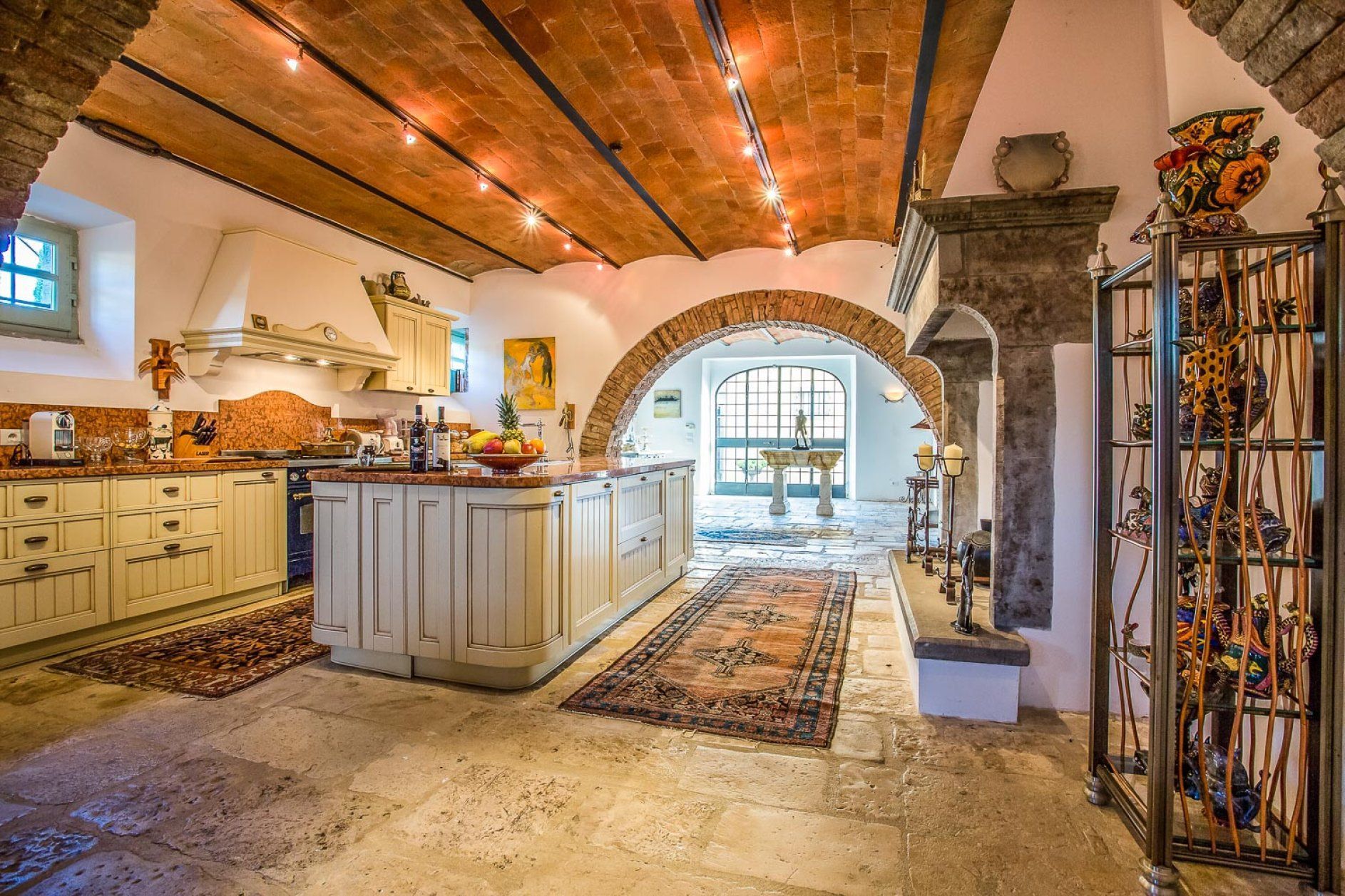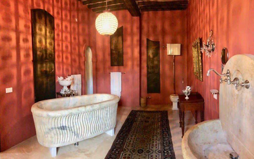 Doors from the main entrance hall, with its stunning marble floor, leas to the study, the living room, well equipped kitchen and the downstairs bathroom. Also leading from the entrance hall is a beautiful stone staircase to the first floor and its spacious and beautifully furnished lounge with balcony overlooking the central courtyard. The lounge leads onto the master suite comprising large double bedroom and bathroom, and a second bedroom with its own private entrance could be used as a honeymoon-style retreat within this vacation rental, all with lovely marble floors. Continuing up the stone staircase, the second floor contains a further three double bedrooms and en-suite bathrooms as well as fully equipped laundry. Air conditioning units only on the five ensuite bedrooms.
